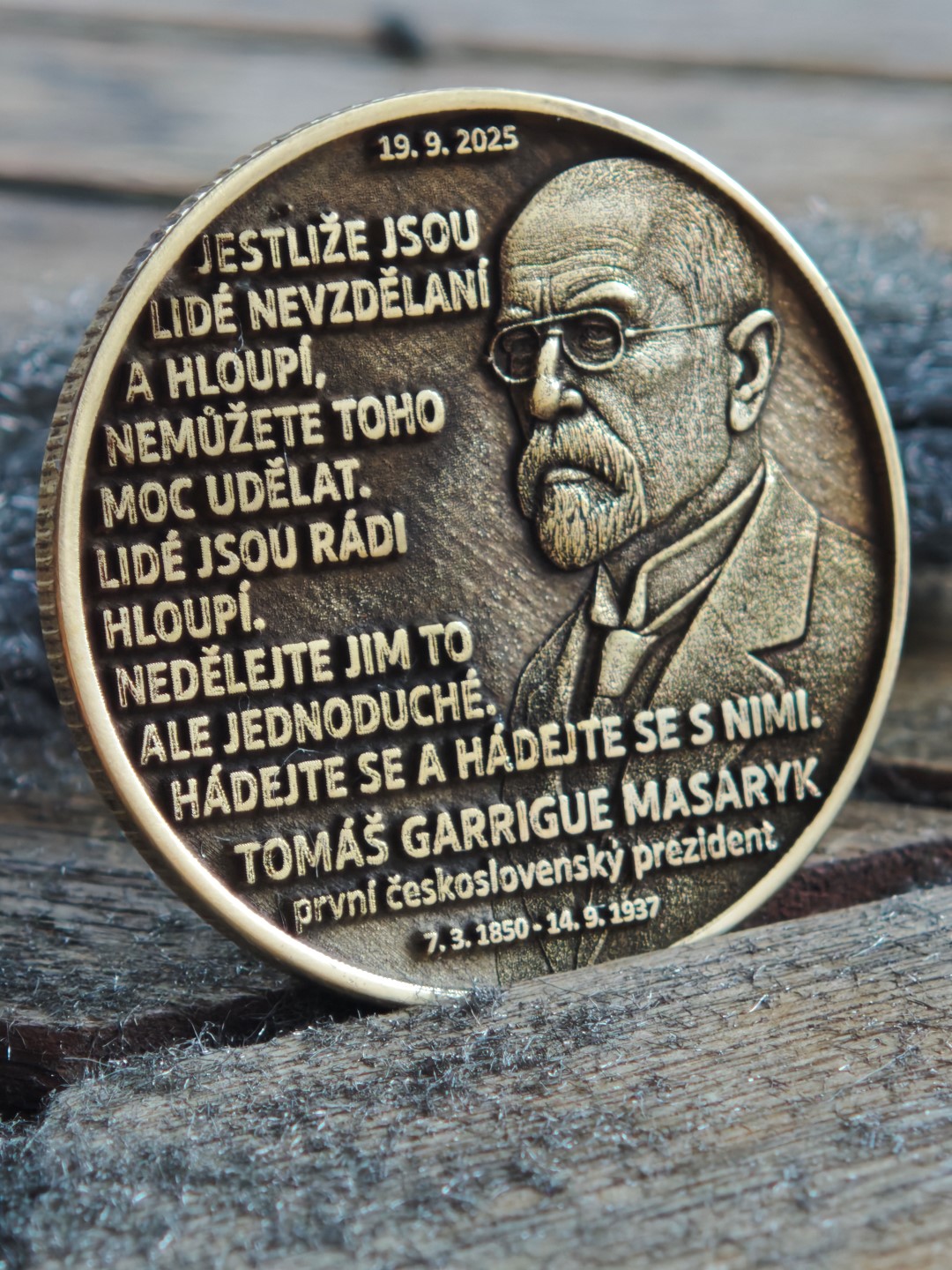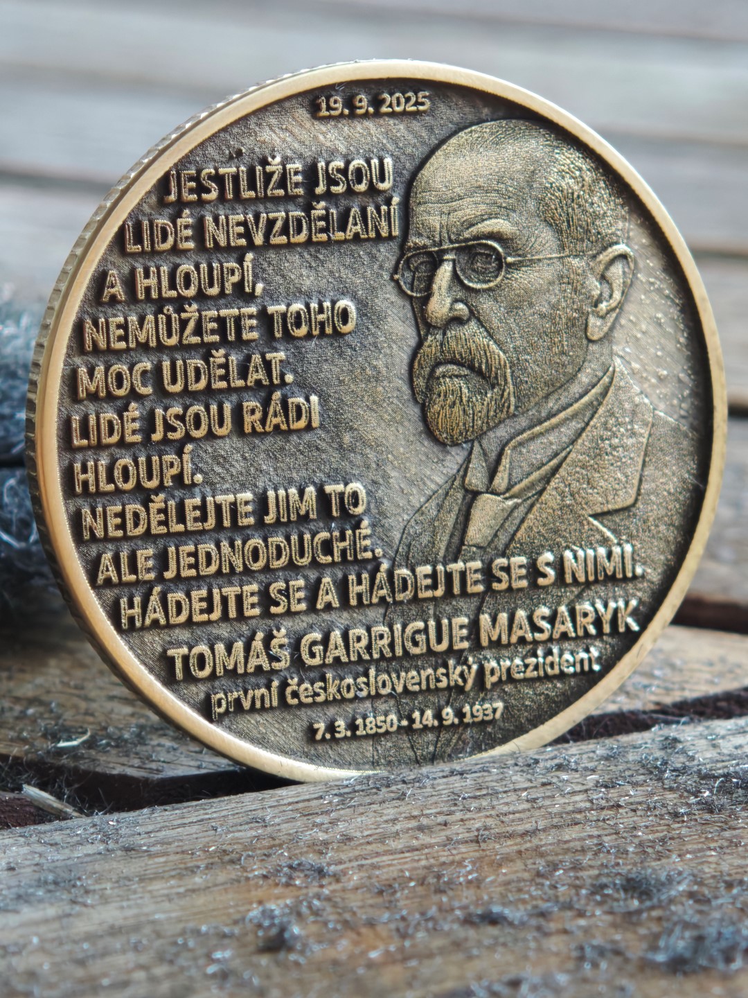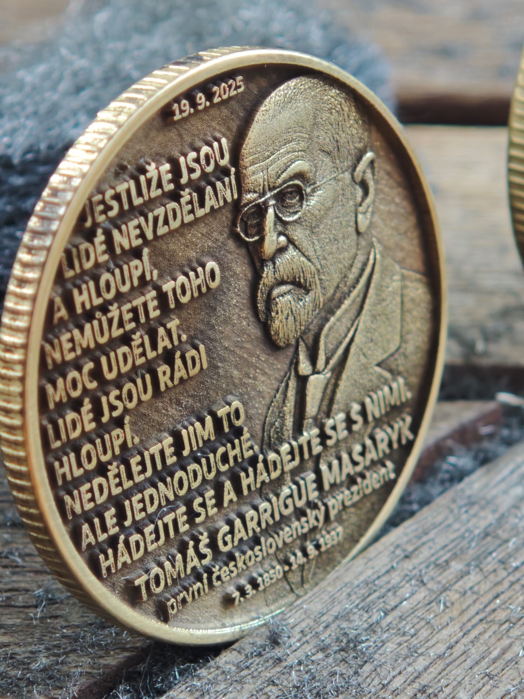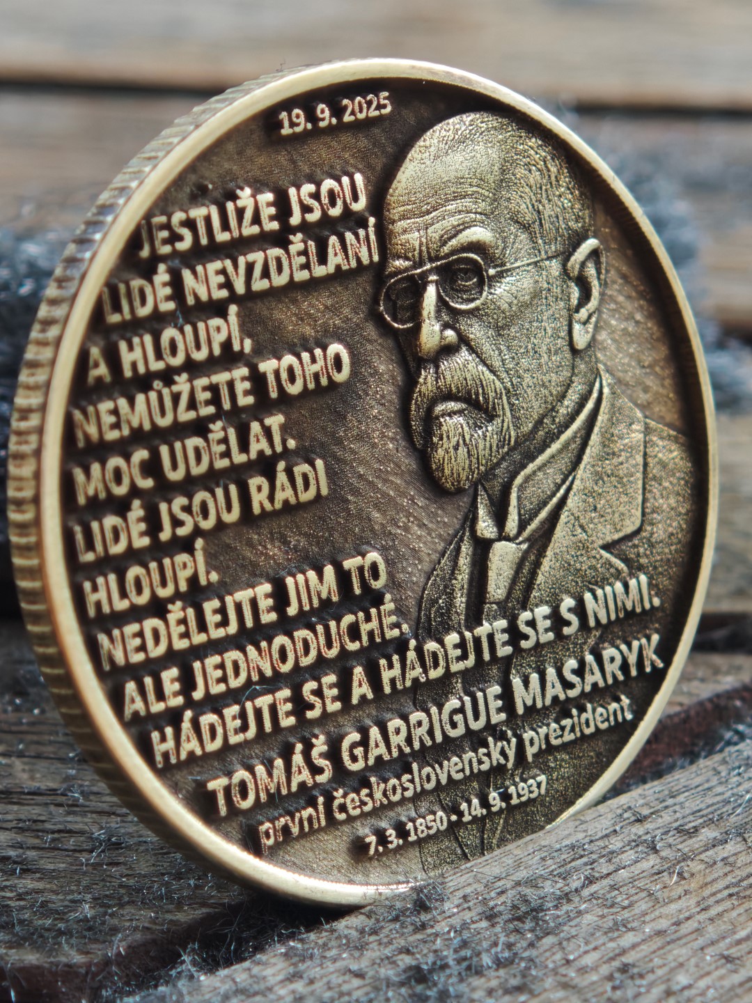 Pamětní mince vyrobená k příležitosti zveřejnění dopisu T.G. Masaryka 19.9 2025