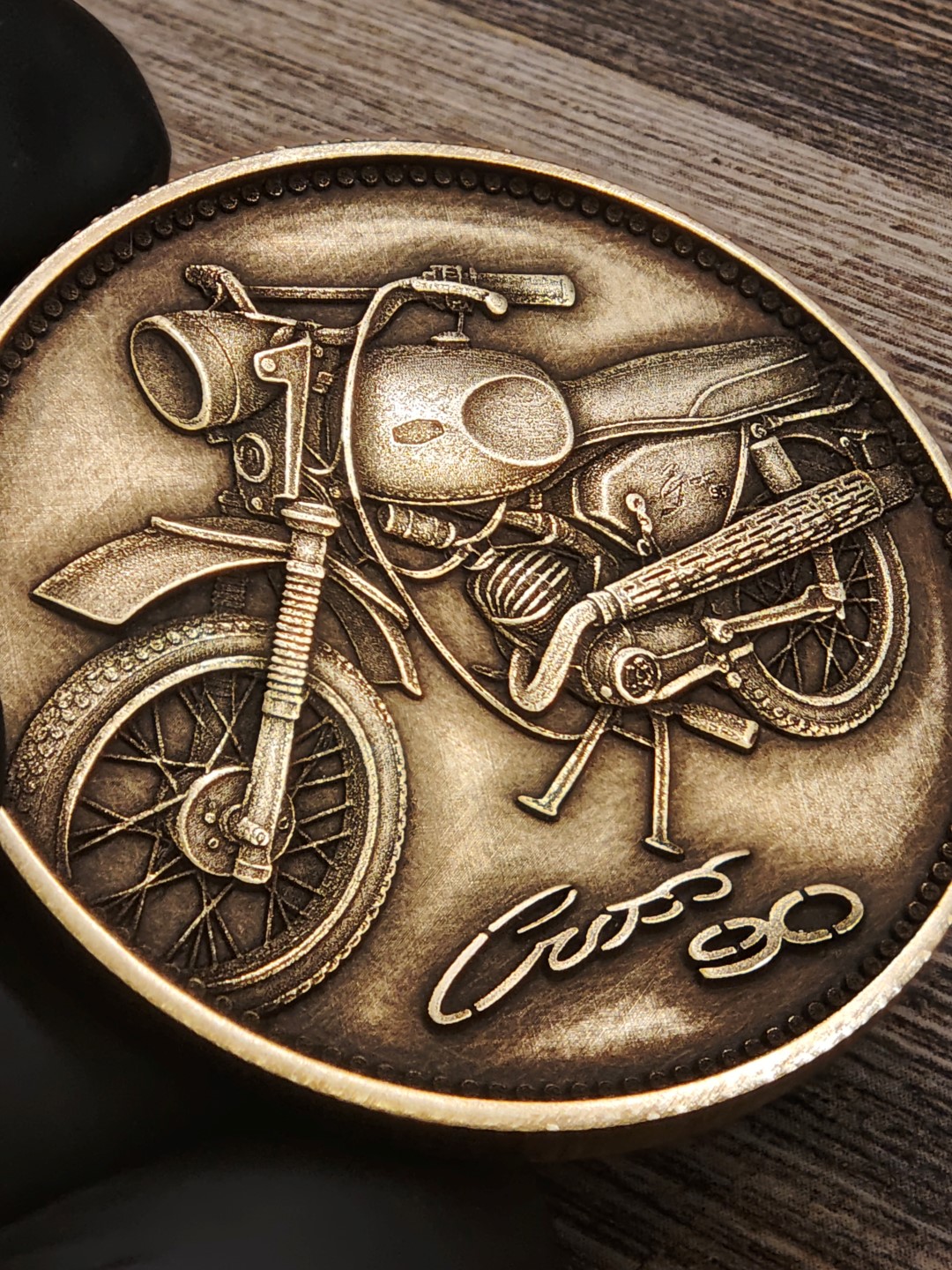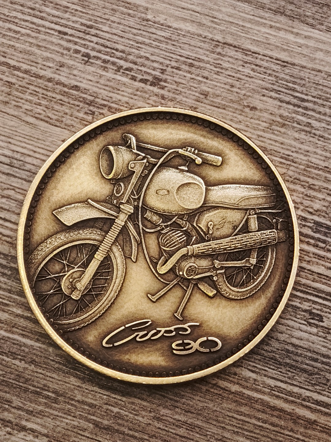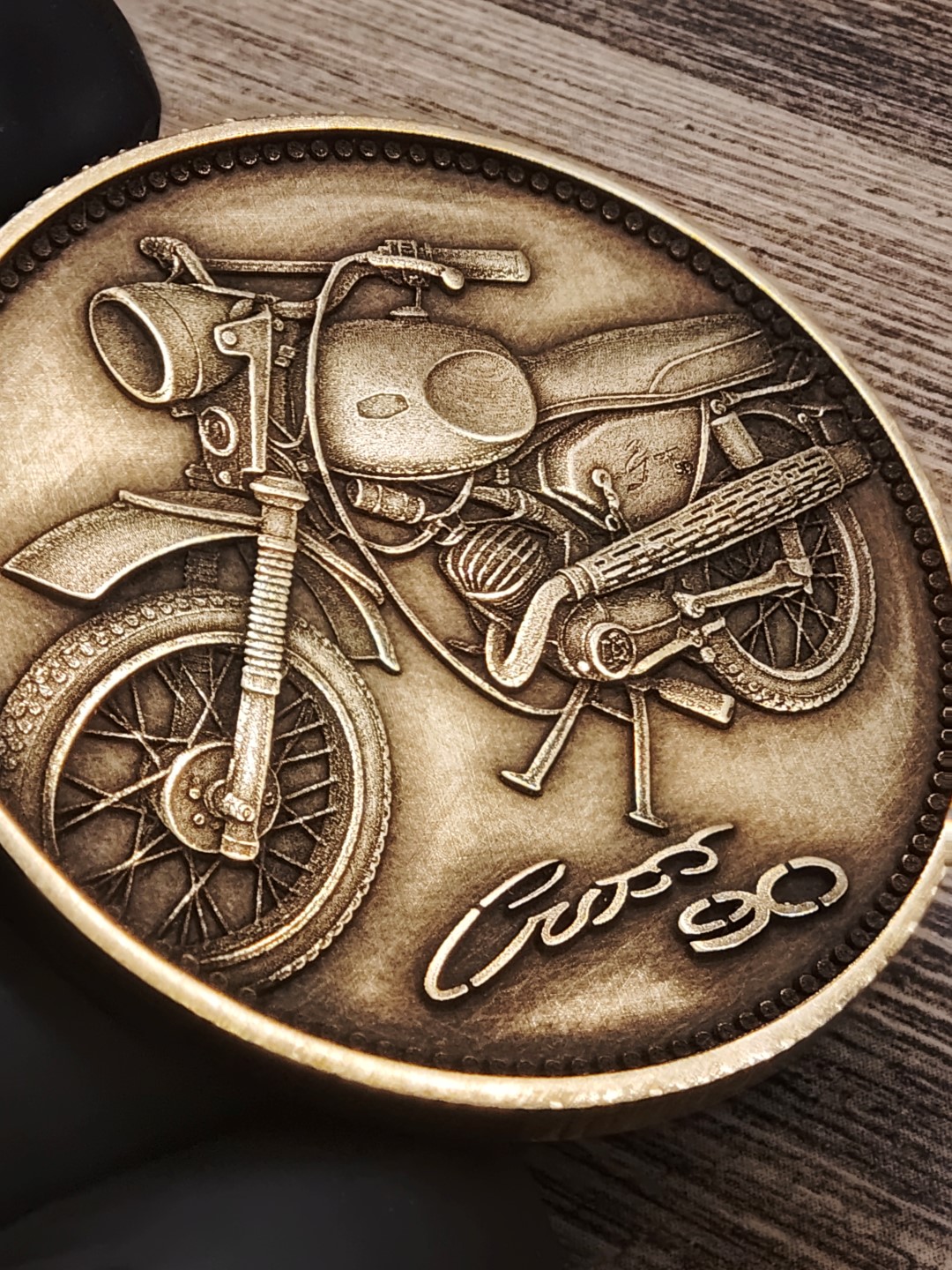 Pamětní mince / plaketa s motivem oblíbeného československého motocyklu