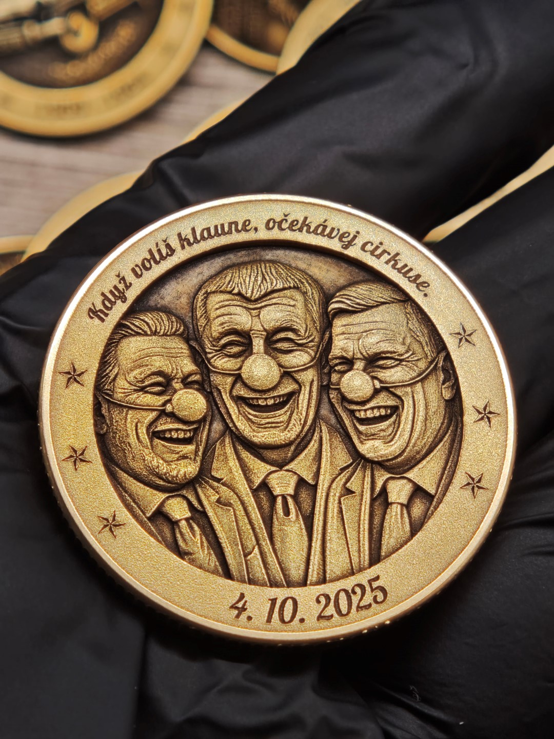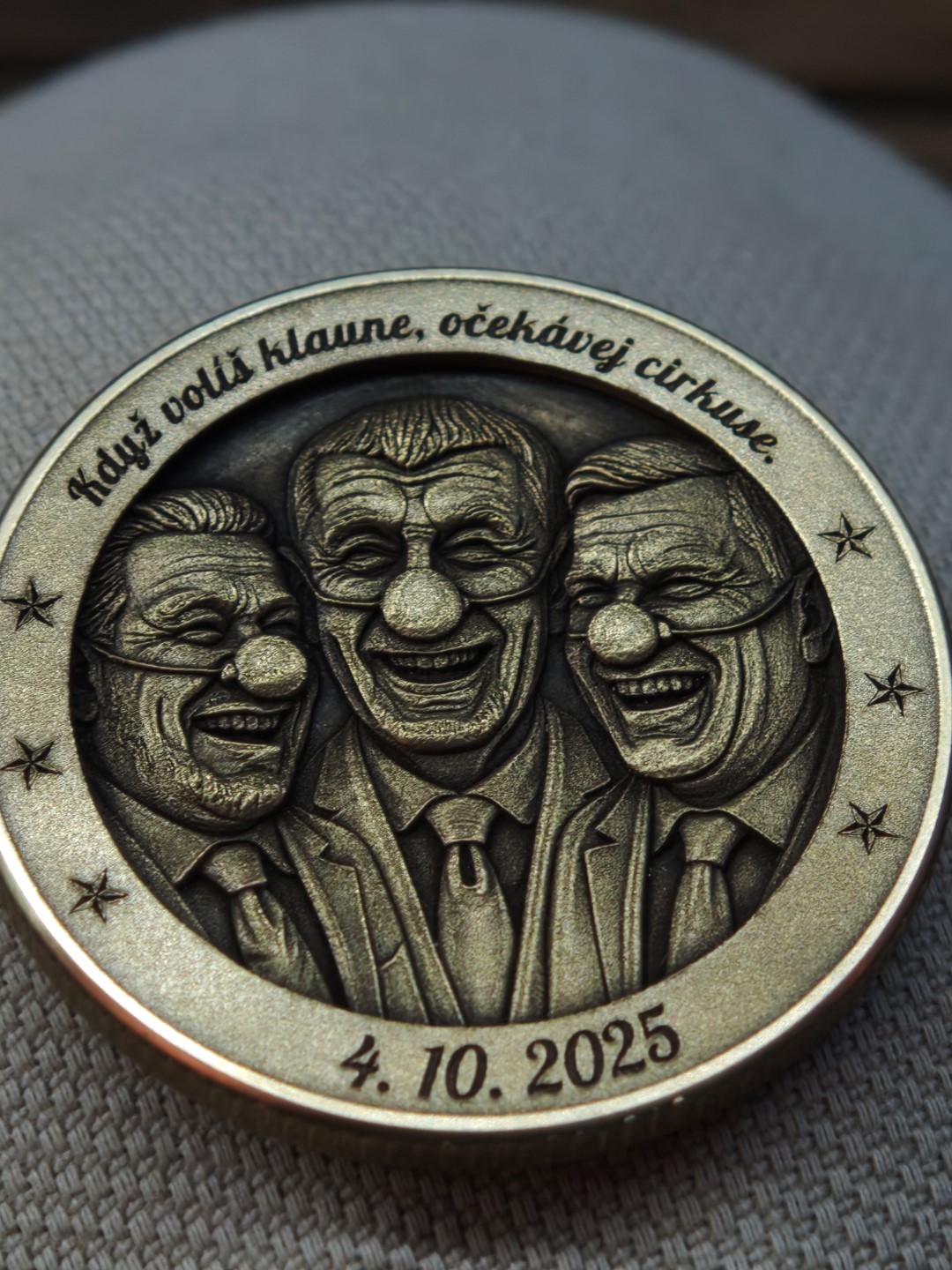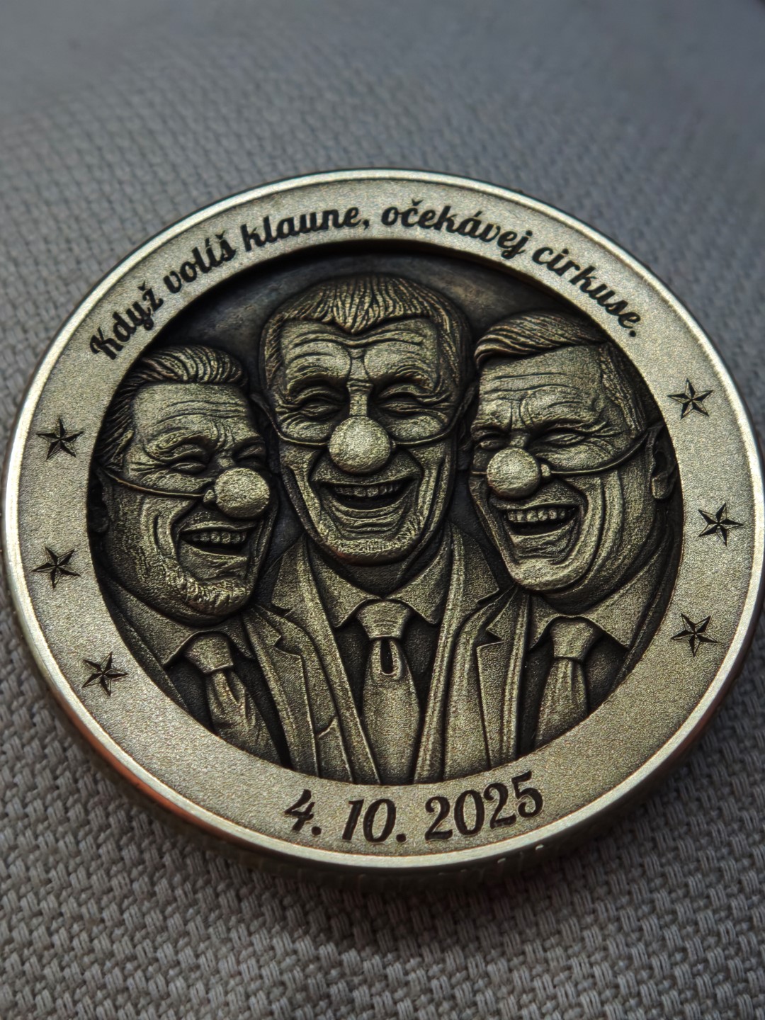 Když volíš klaune, očekávej cirkuse – satirická pamětní mince