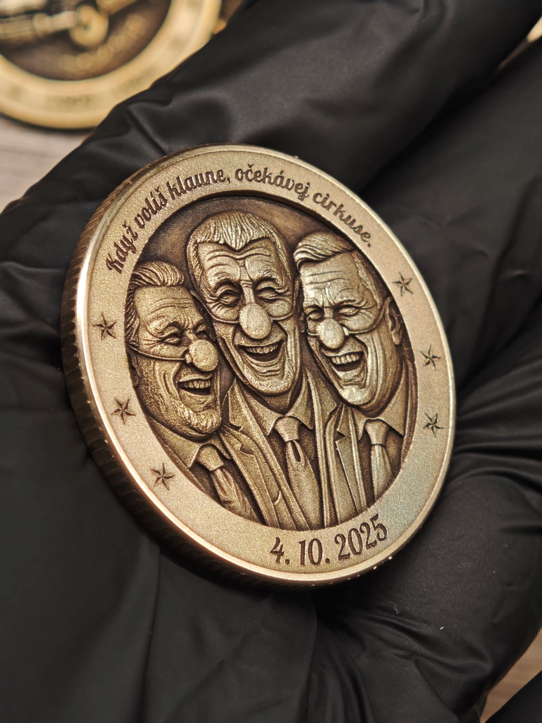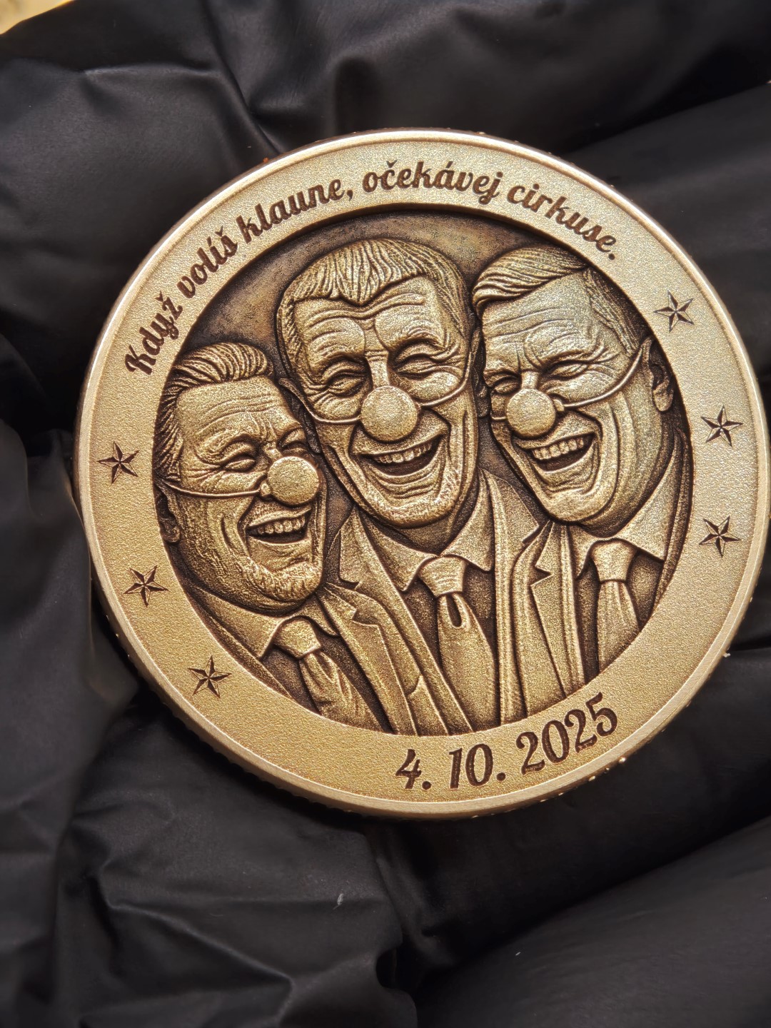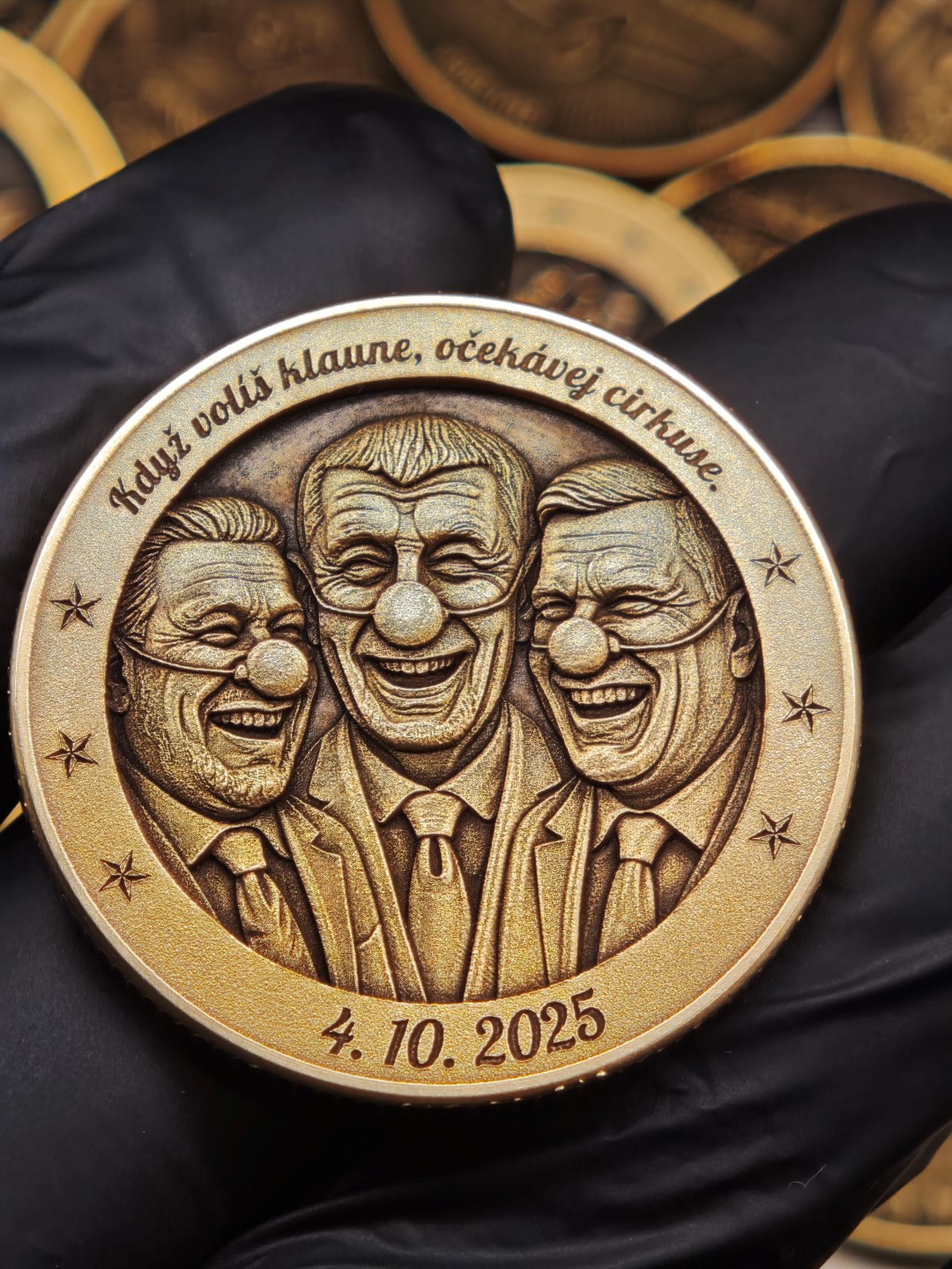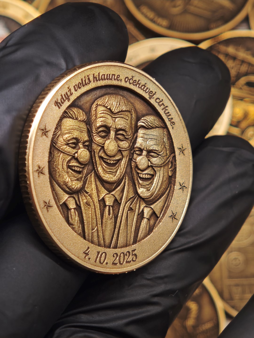 Když volíš klaune, očekávej cirkuse – satirická pamětní mince