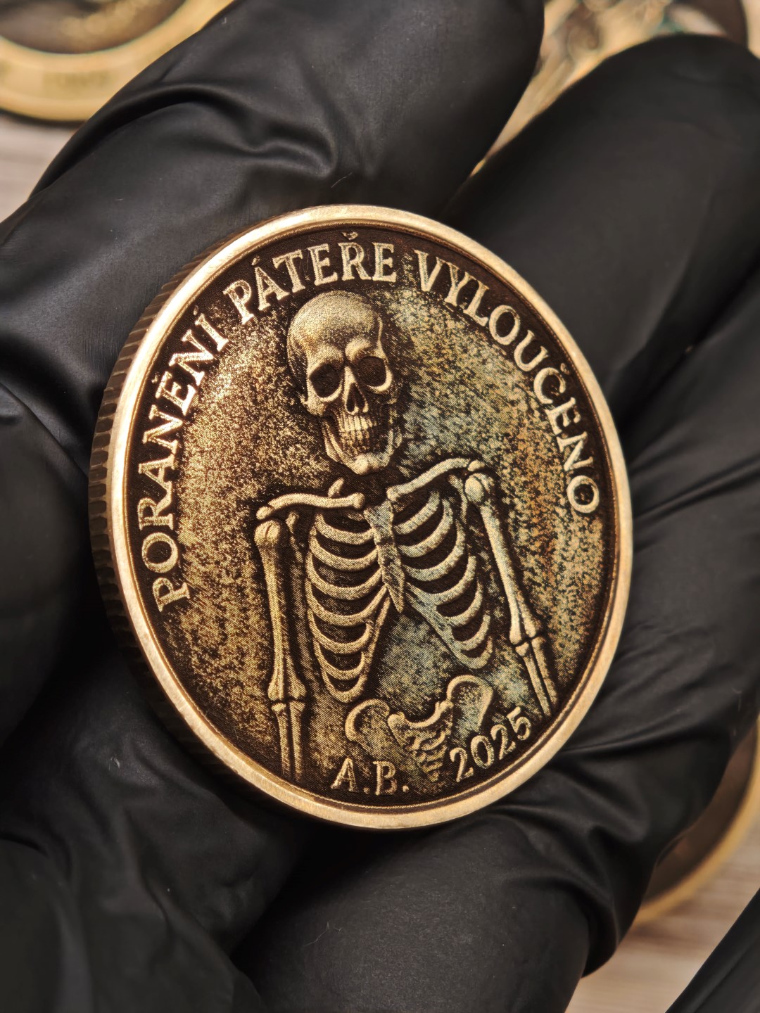 Bez tohoto je mince ze zadní strany lesklá, hladká a s našimi iniciály.