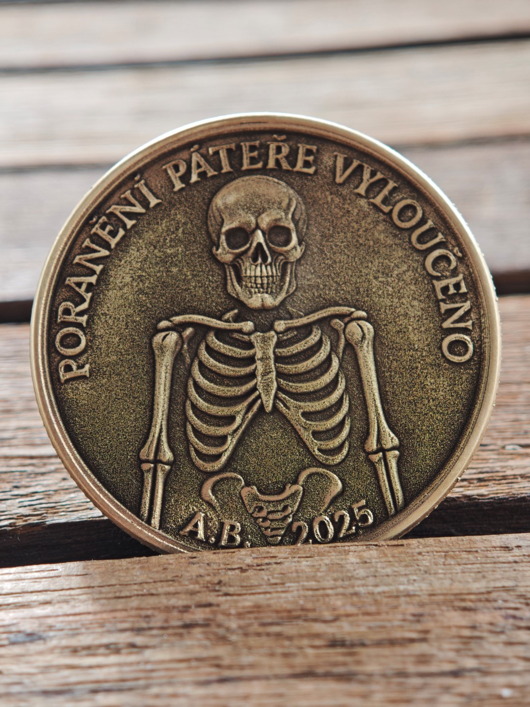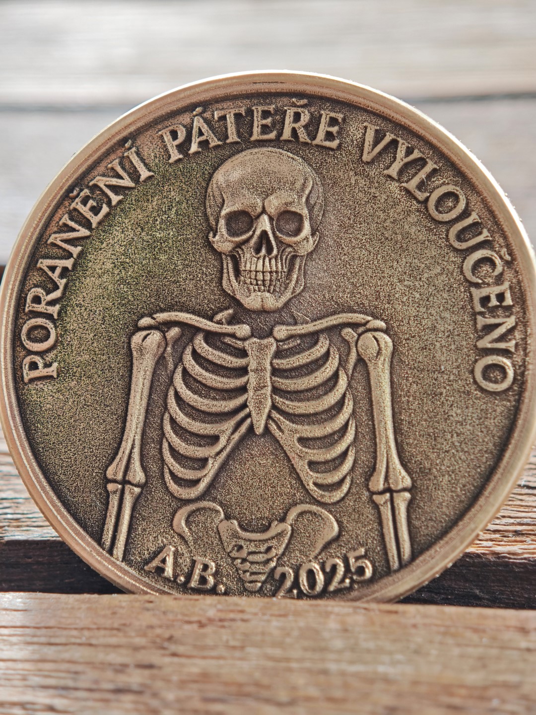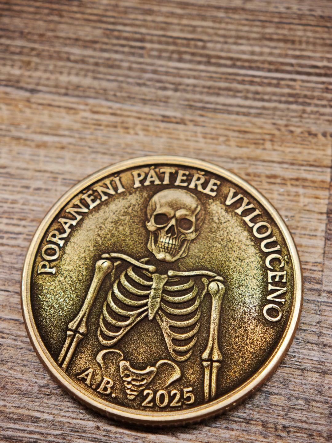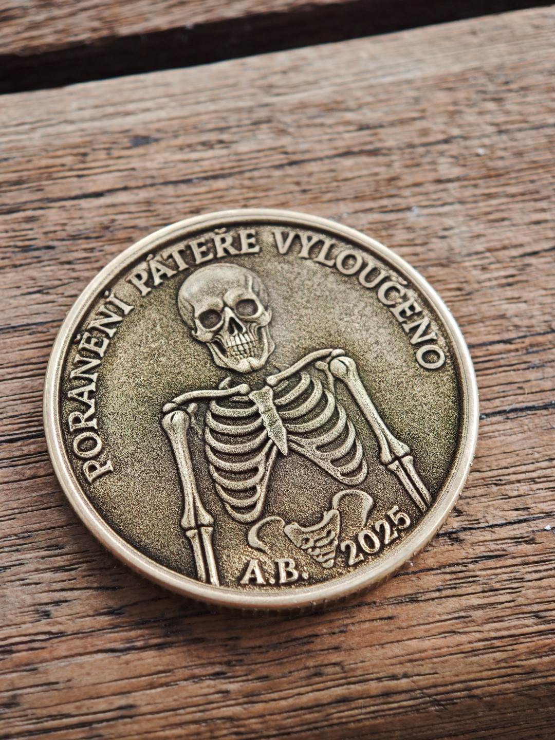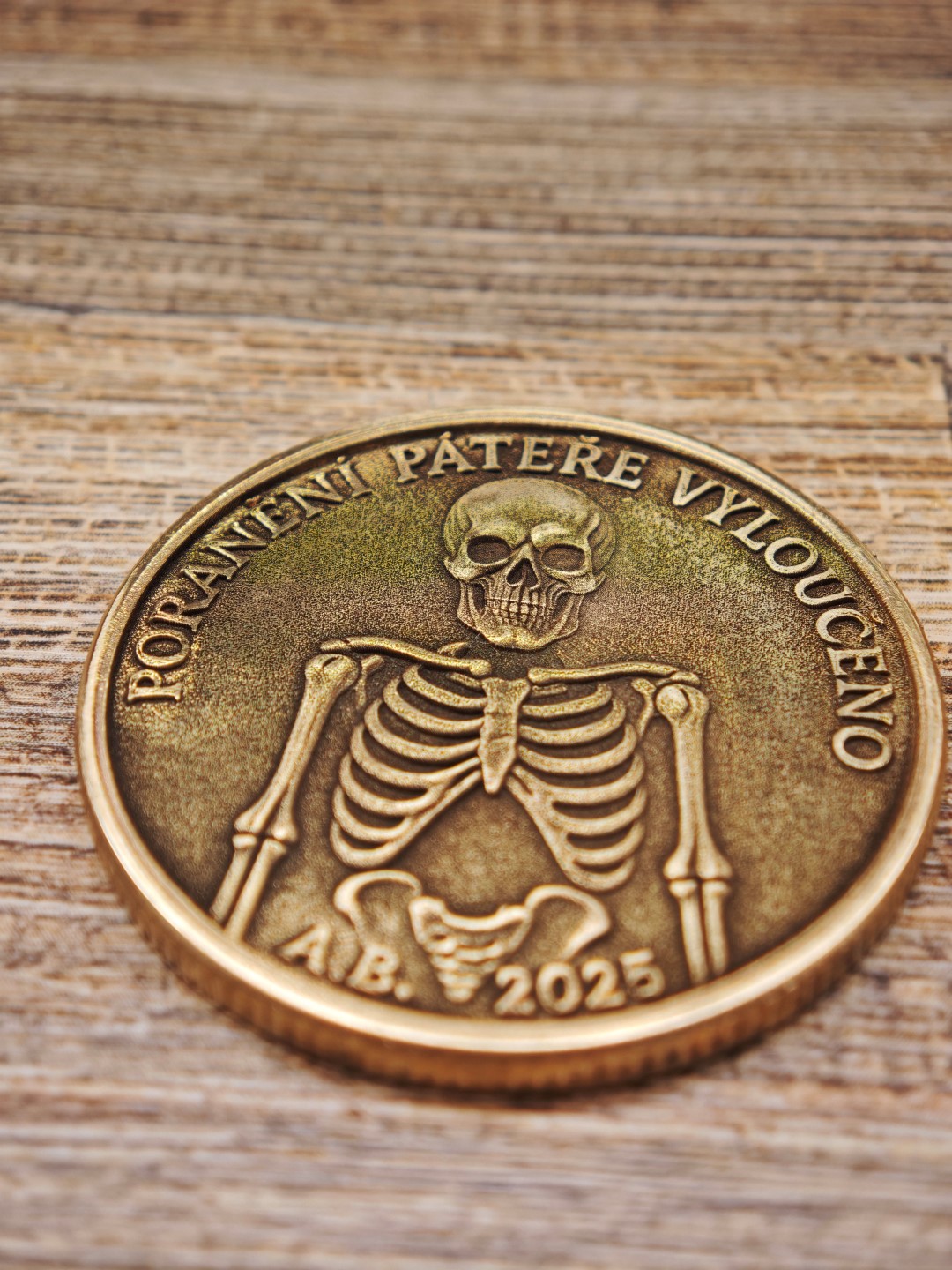 Bez tohoto je mince ze zadní strany lesklá, hladká a s našimi iniciály.