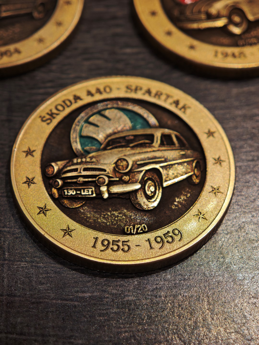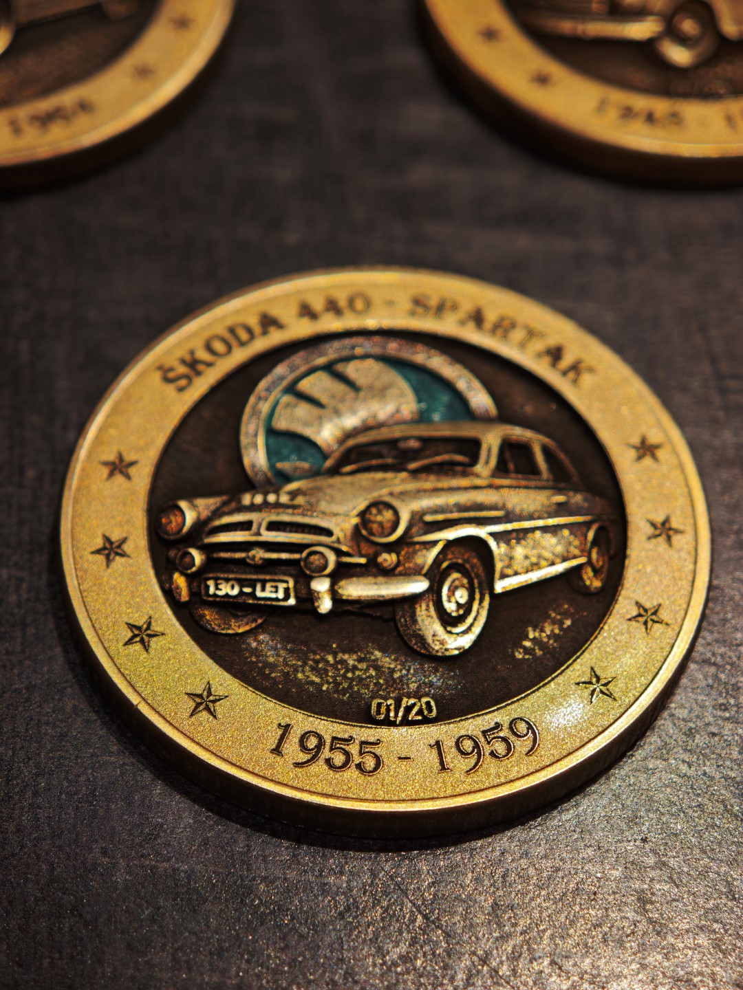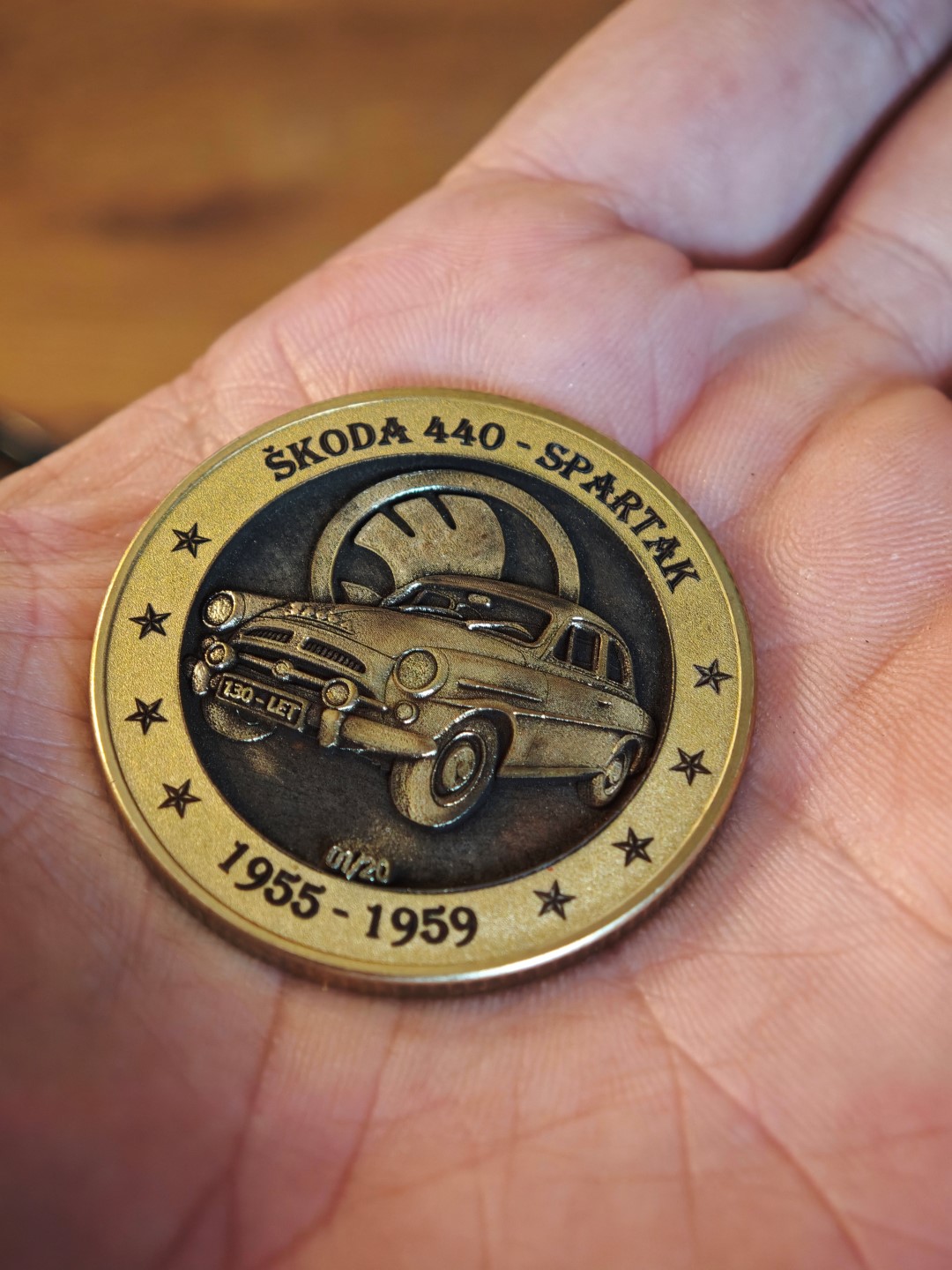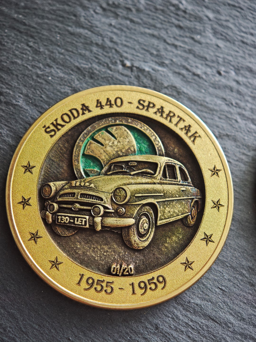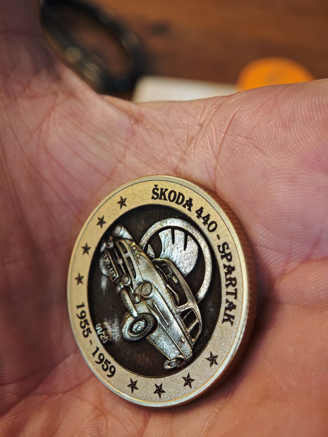 Pamětní mince / plaketa s motivem oblíbeného Československého vozu.