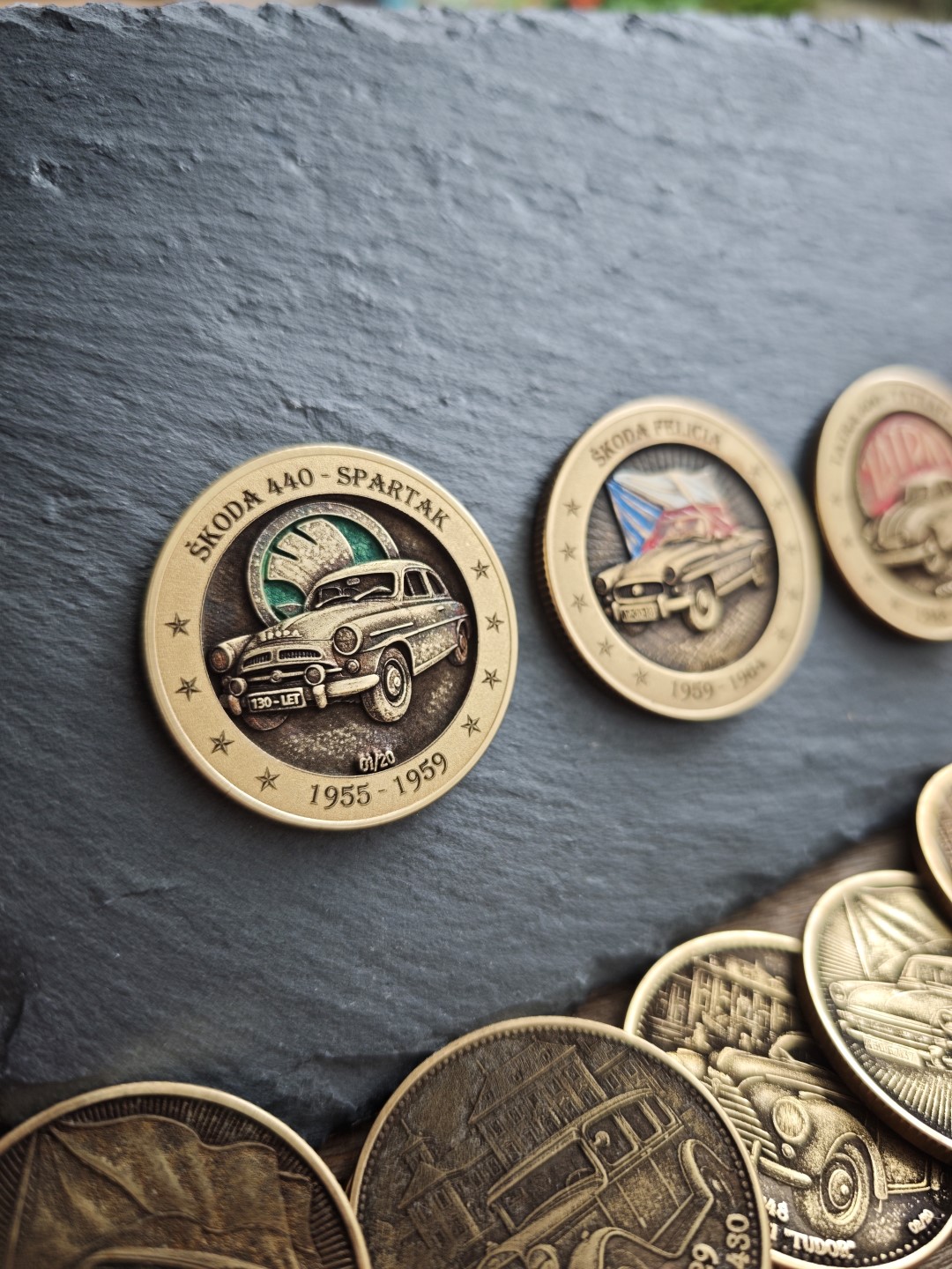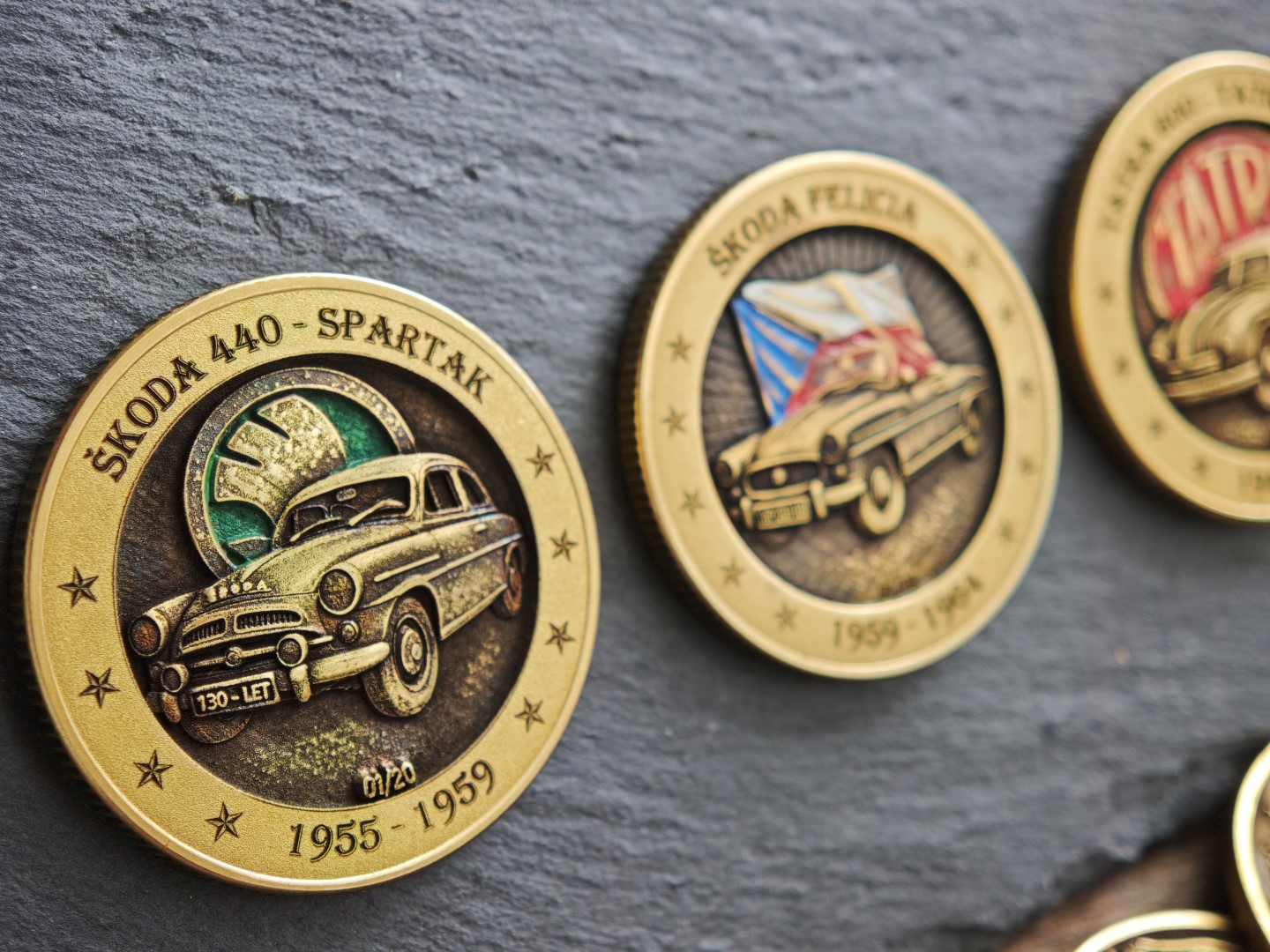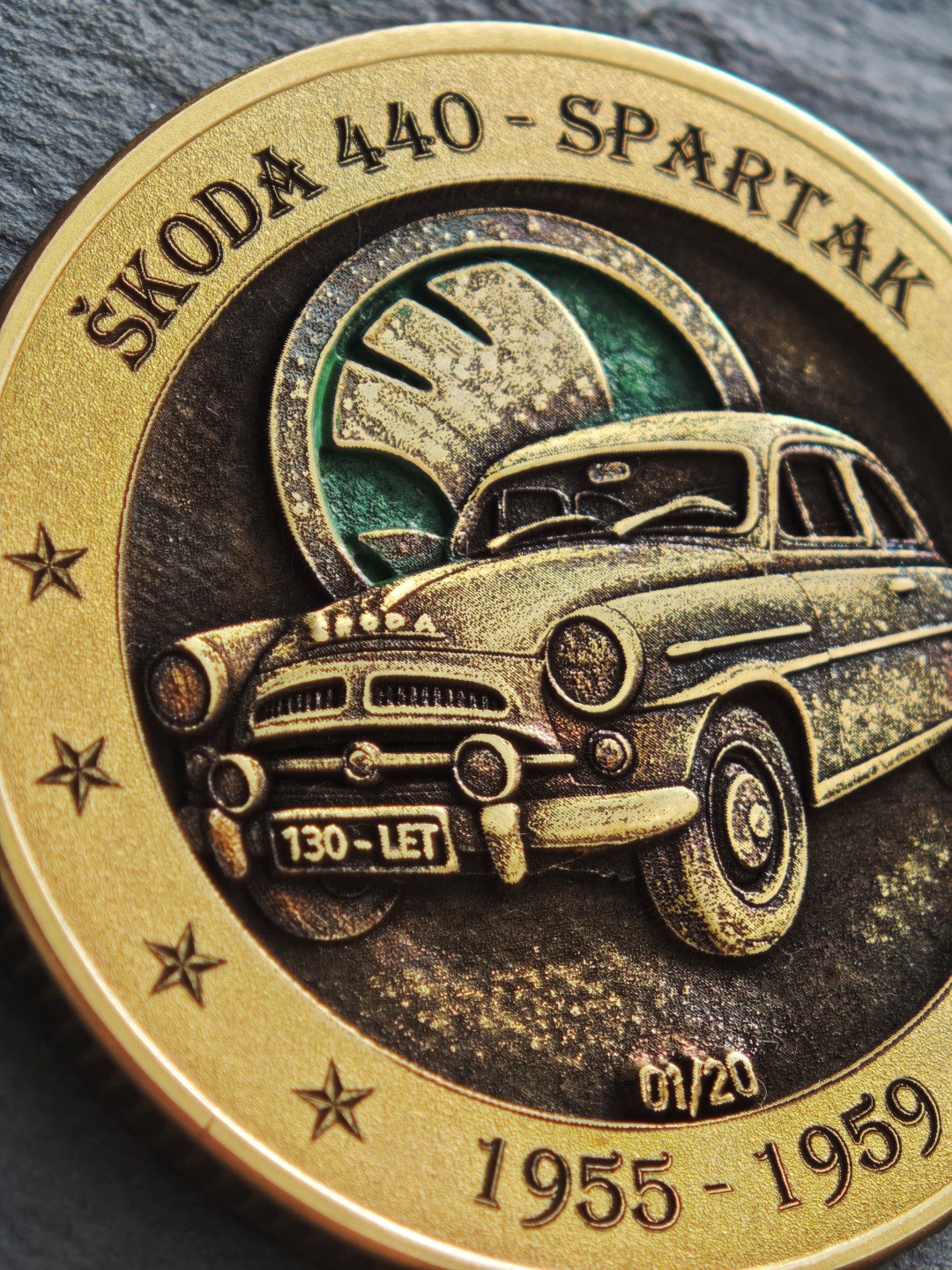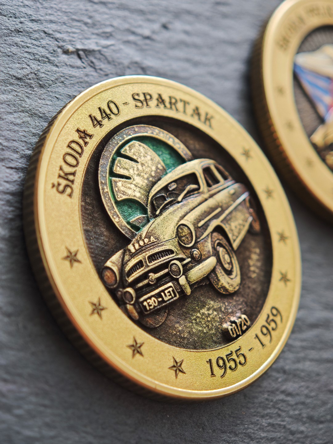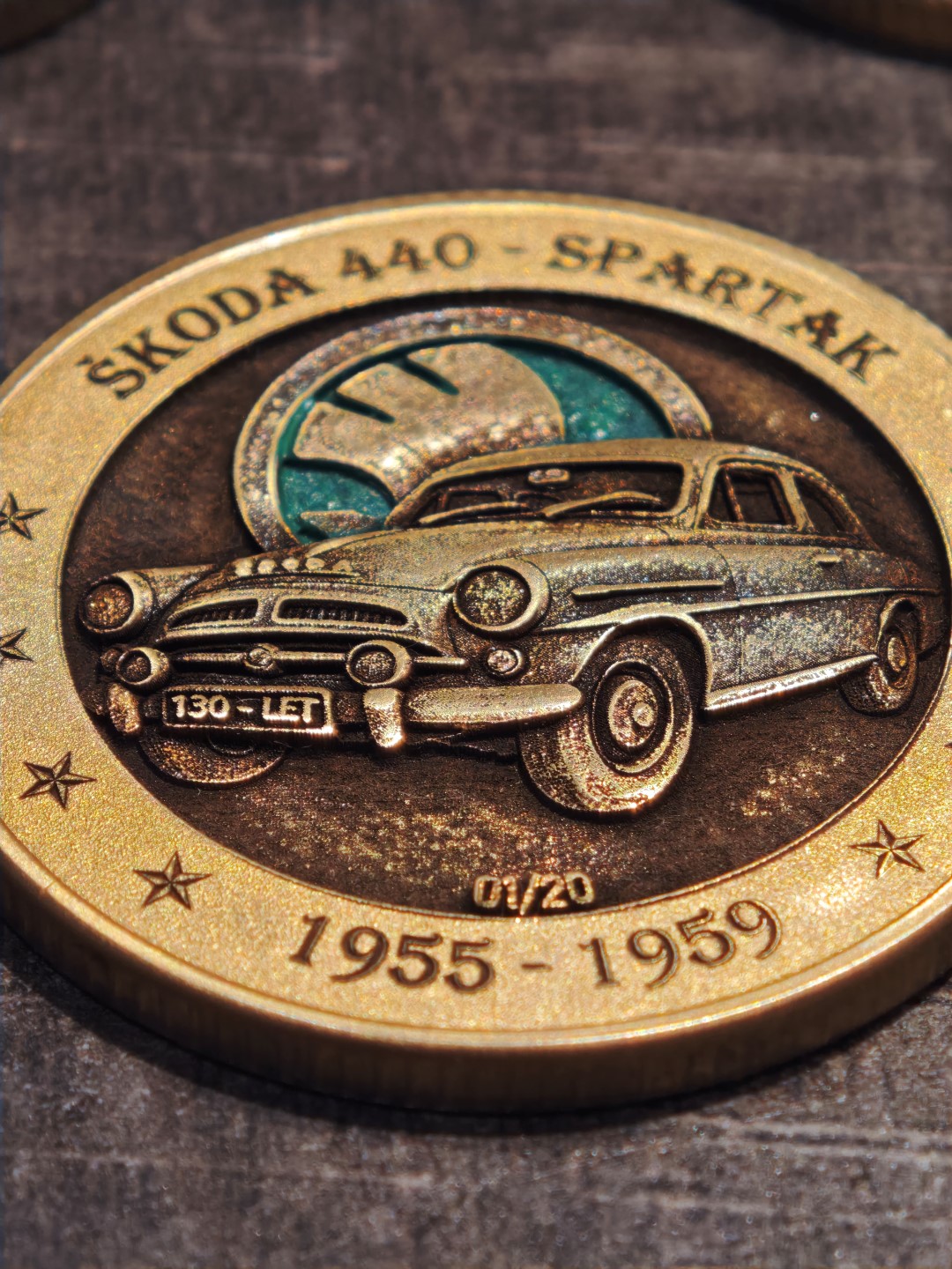 Pamětní mince / plaketa s motivem oblíbeného Československého vozu.