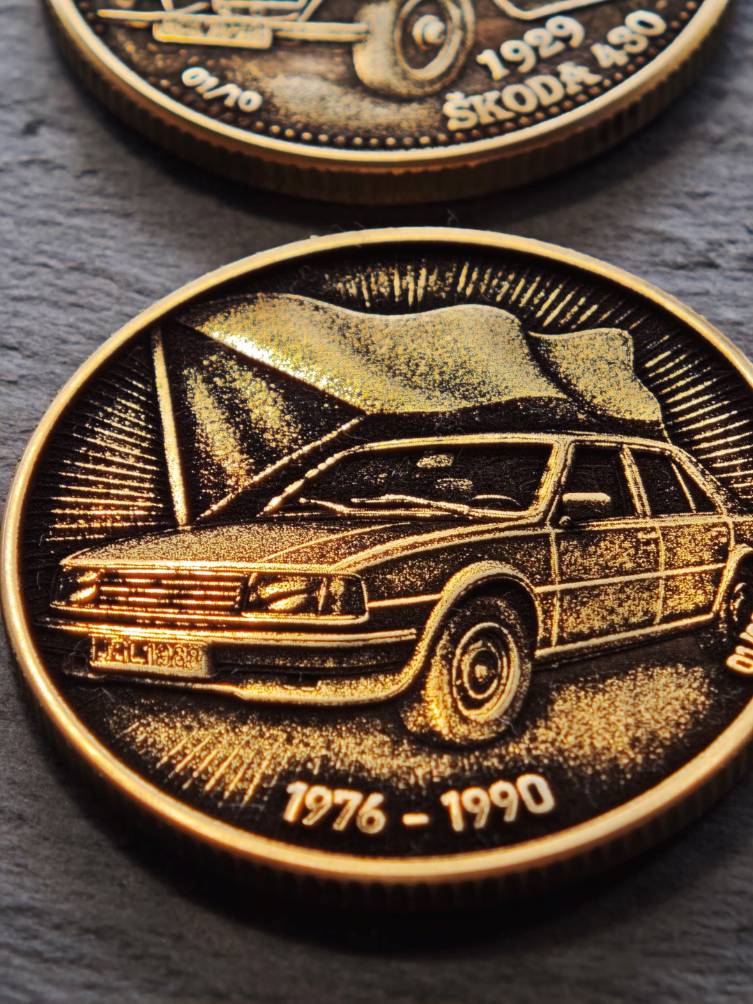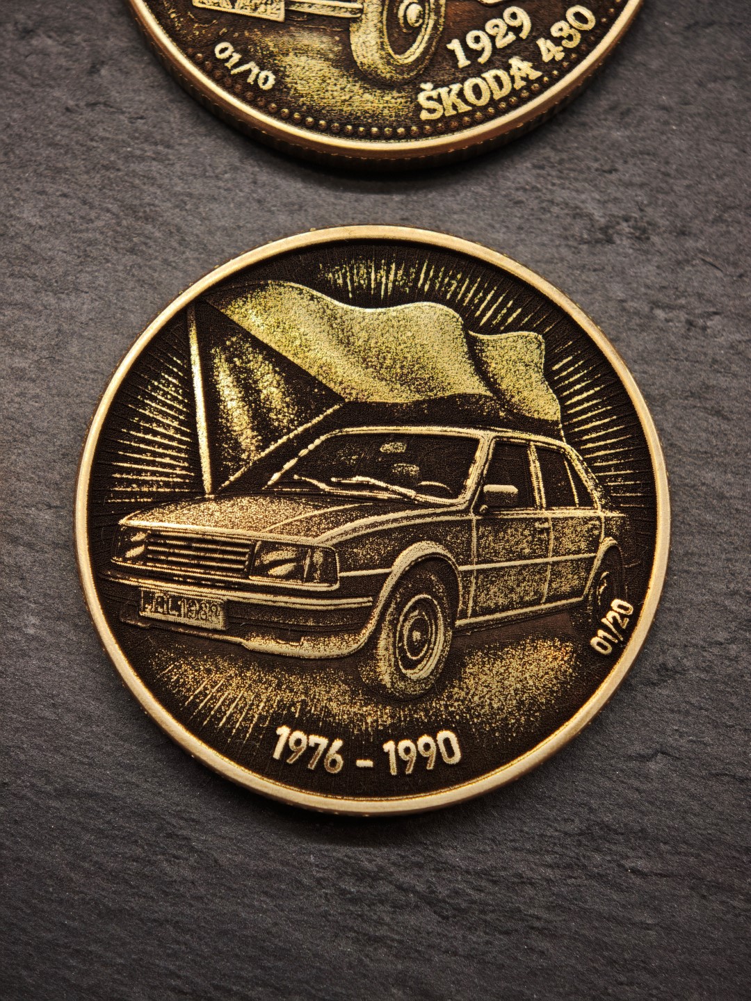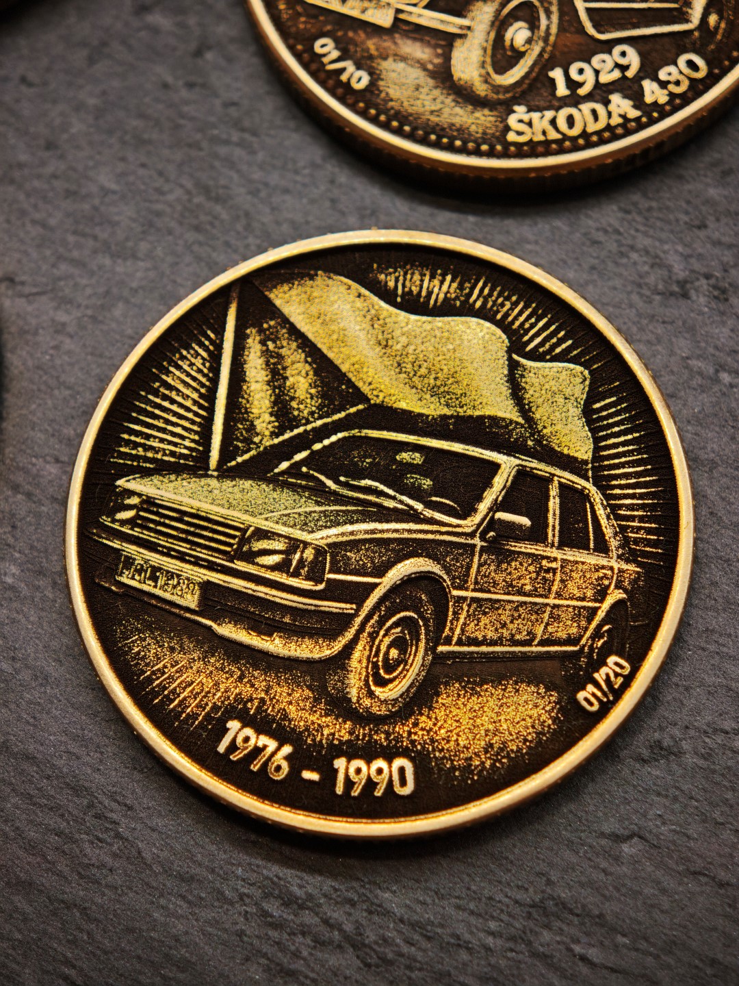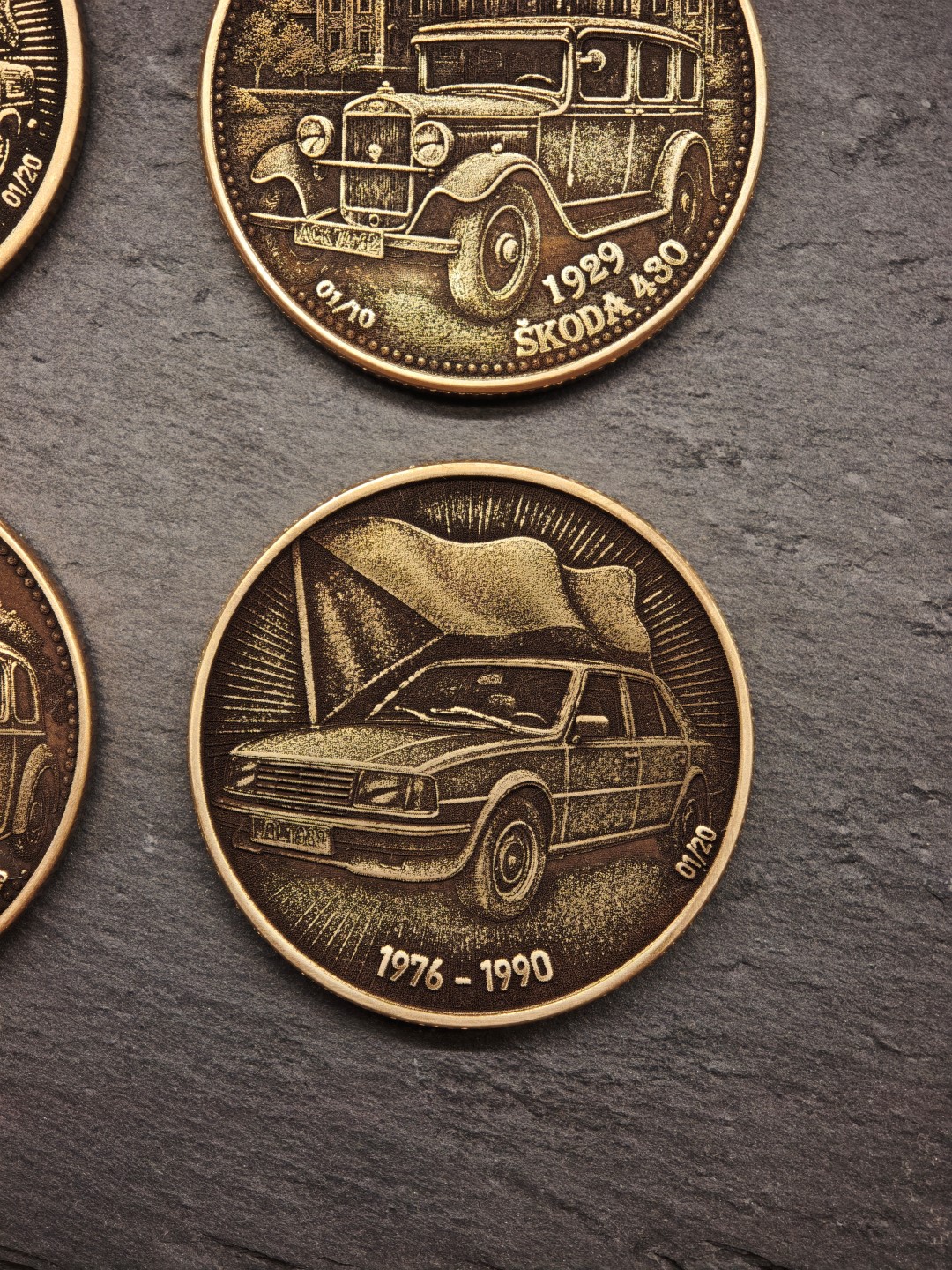 Pamětní mince / plaketa s motivem oblíbené řady Československého vozu.