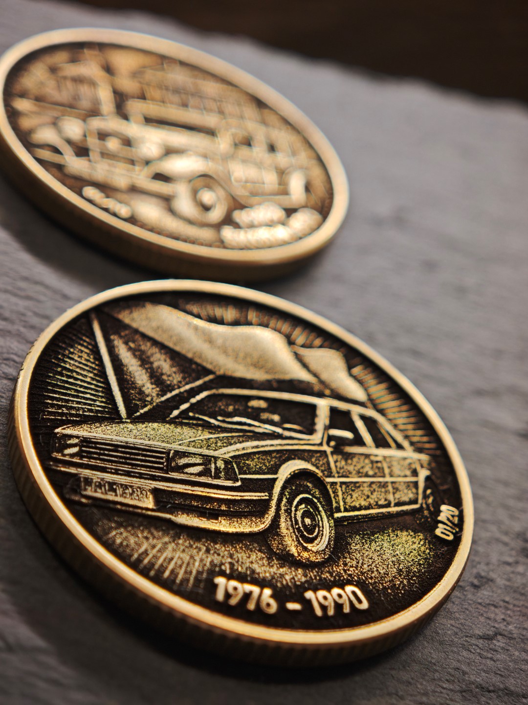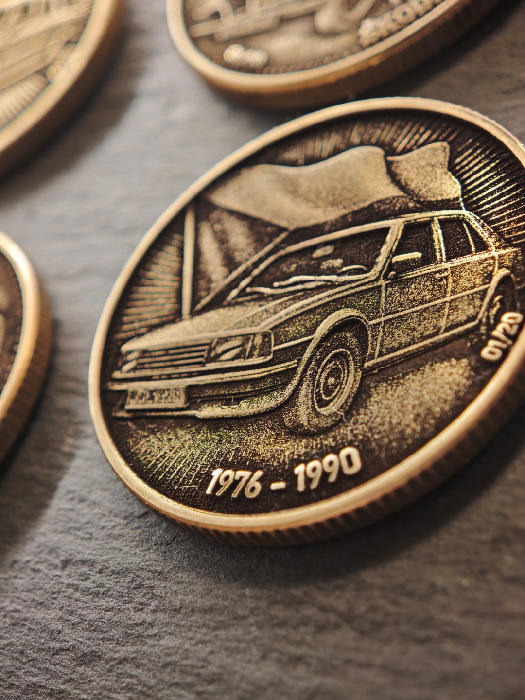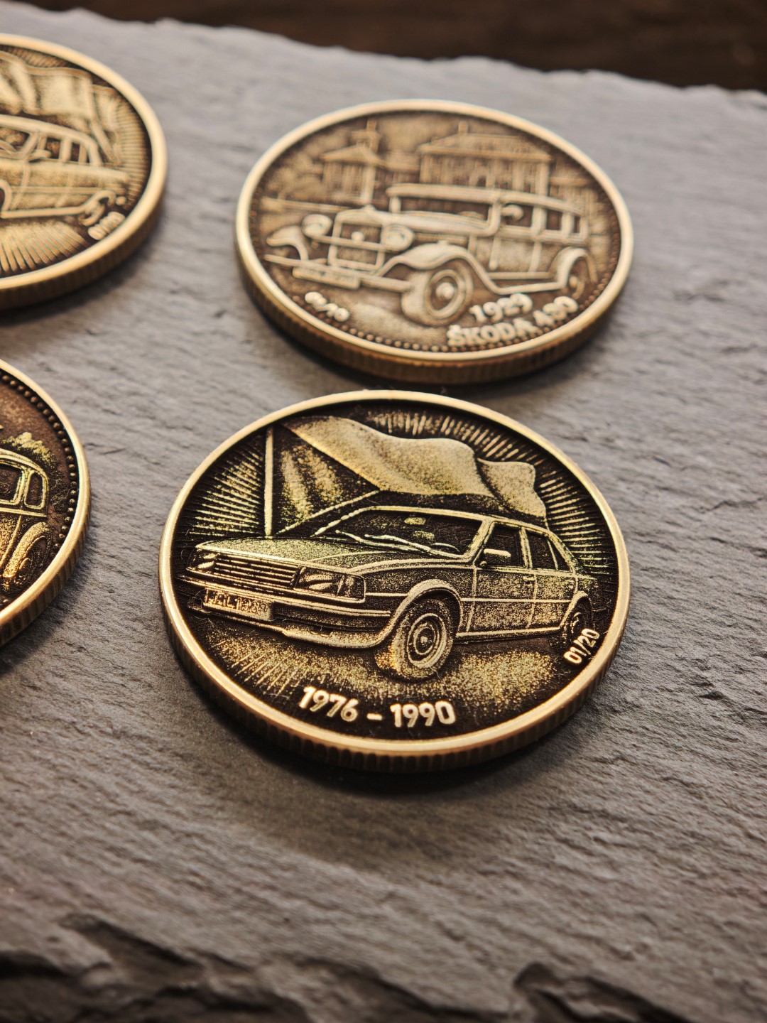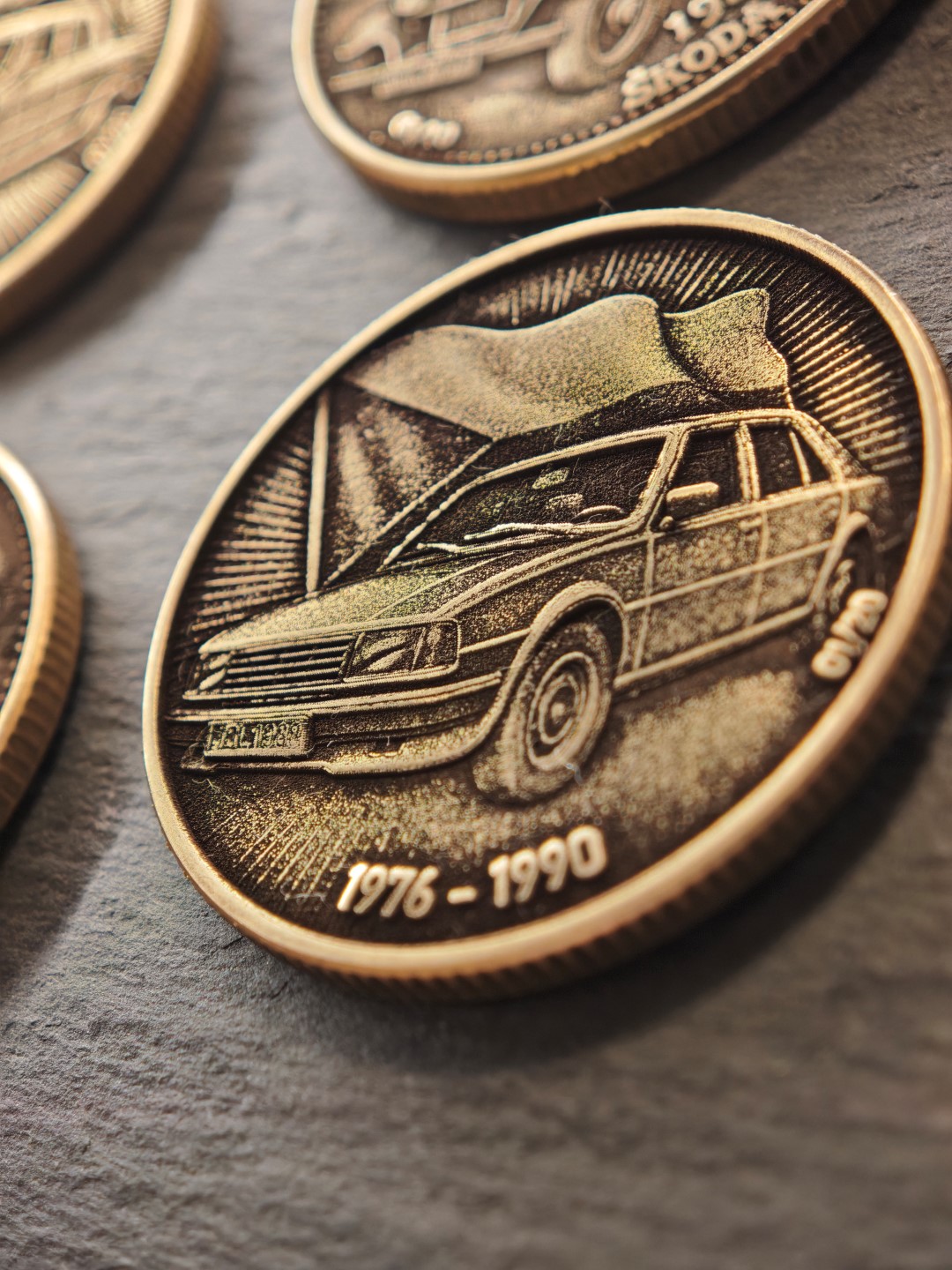 Pamětní mince / plaketa s motivem oblíbené řady Československého vozu.