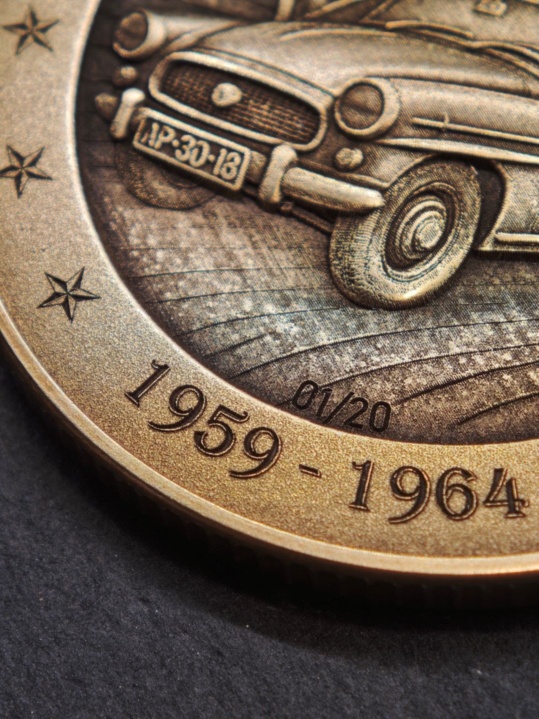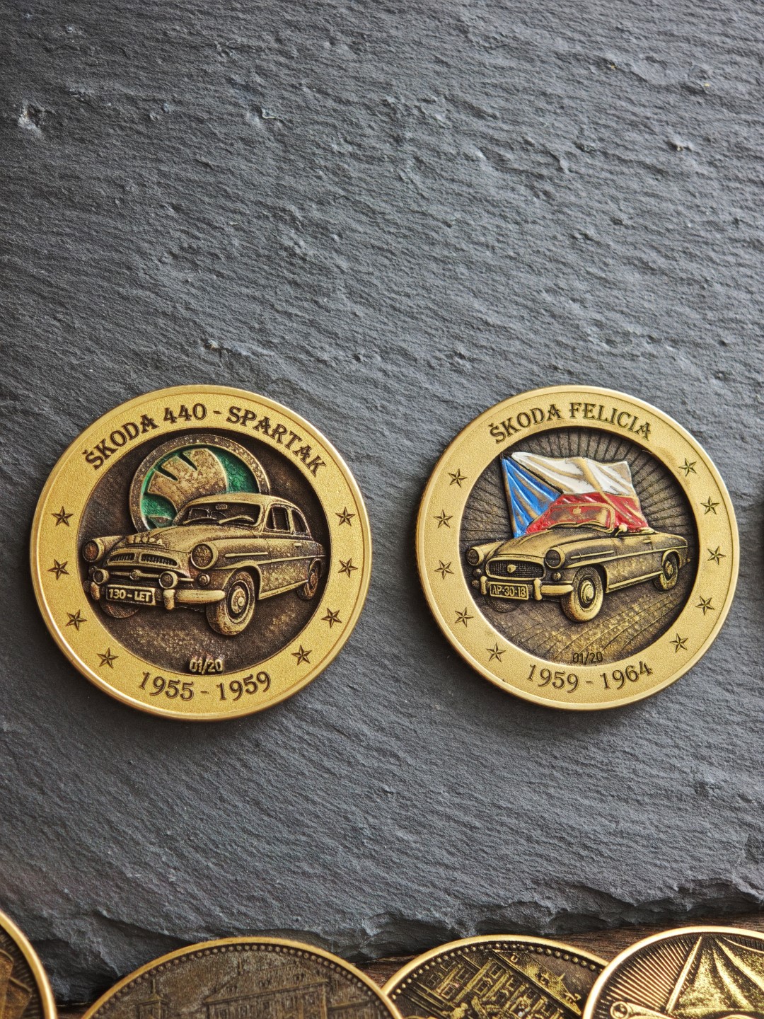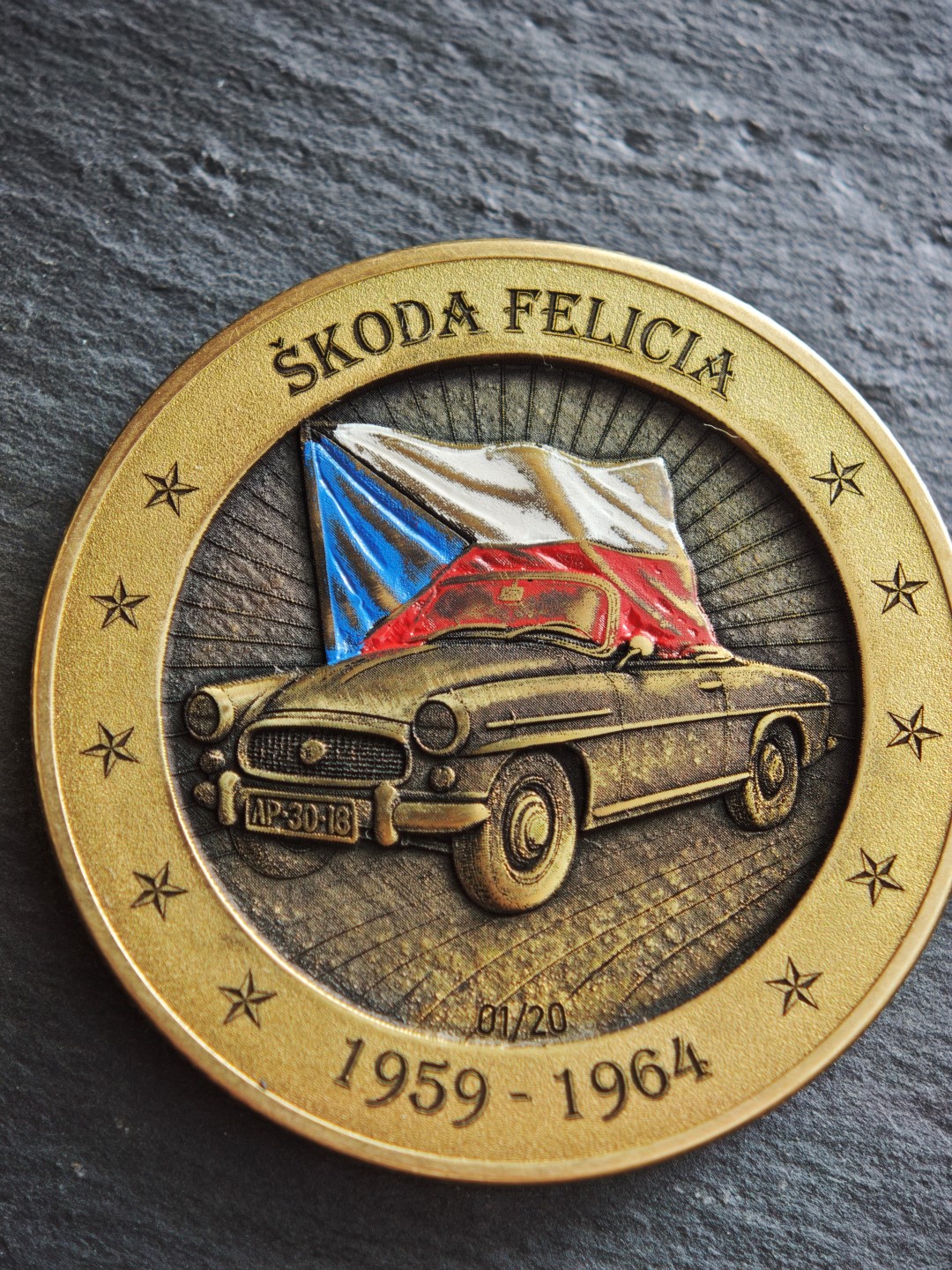 Pamětní mince / plaketa s motivem oblíbeného socialistického kabrioletu.