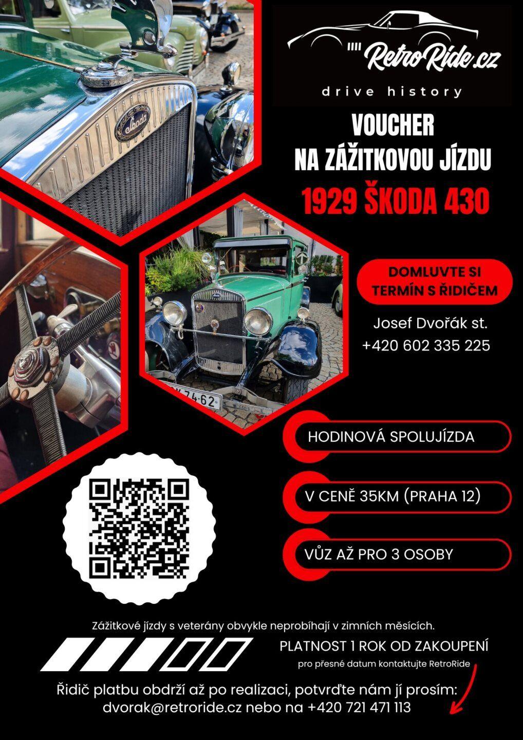 Tento voucher nabízí jedinečnou příležitost projet se v historickém voze Škoda 430 z roku 1929 a vytvořit si nezapomenutelné vzpomínky.