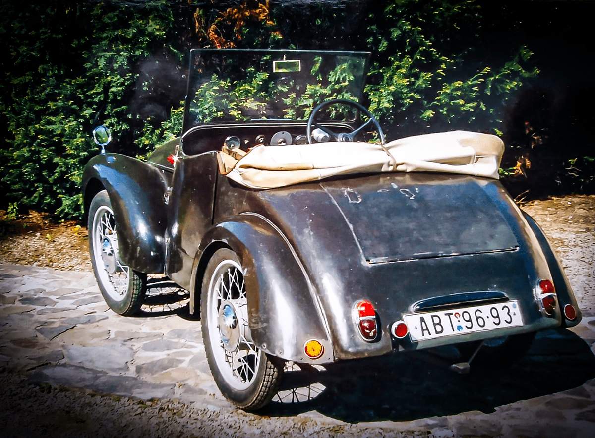 Gnome et Rhône: V padesátých letech se Evropa sotva vzpamatovávala z druhé světové války a všudypřítomný nedostatek vytvářel tlak na lidskou tvořivost a improvizaci. Vůz, který si prohlížíte byl vyroben Ing. Šmejkalem z Písnice v roce 1951 a to s použitím motoru z motocyklu Gnome et Rhône o obsahu 750ccm. Použita byla i čtyřstupňová převodovka z tohoto motocyklu, ovšem bez zpáteční rychlosti, tudíž je nutné vůz při couvání tlačit vlastními silami, což původního konstruktéra nijak zvlášť neomezovalo a zvládl s připojeným vozíkem spolu s rodinou procestovat Tatry.