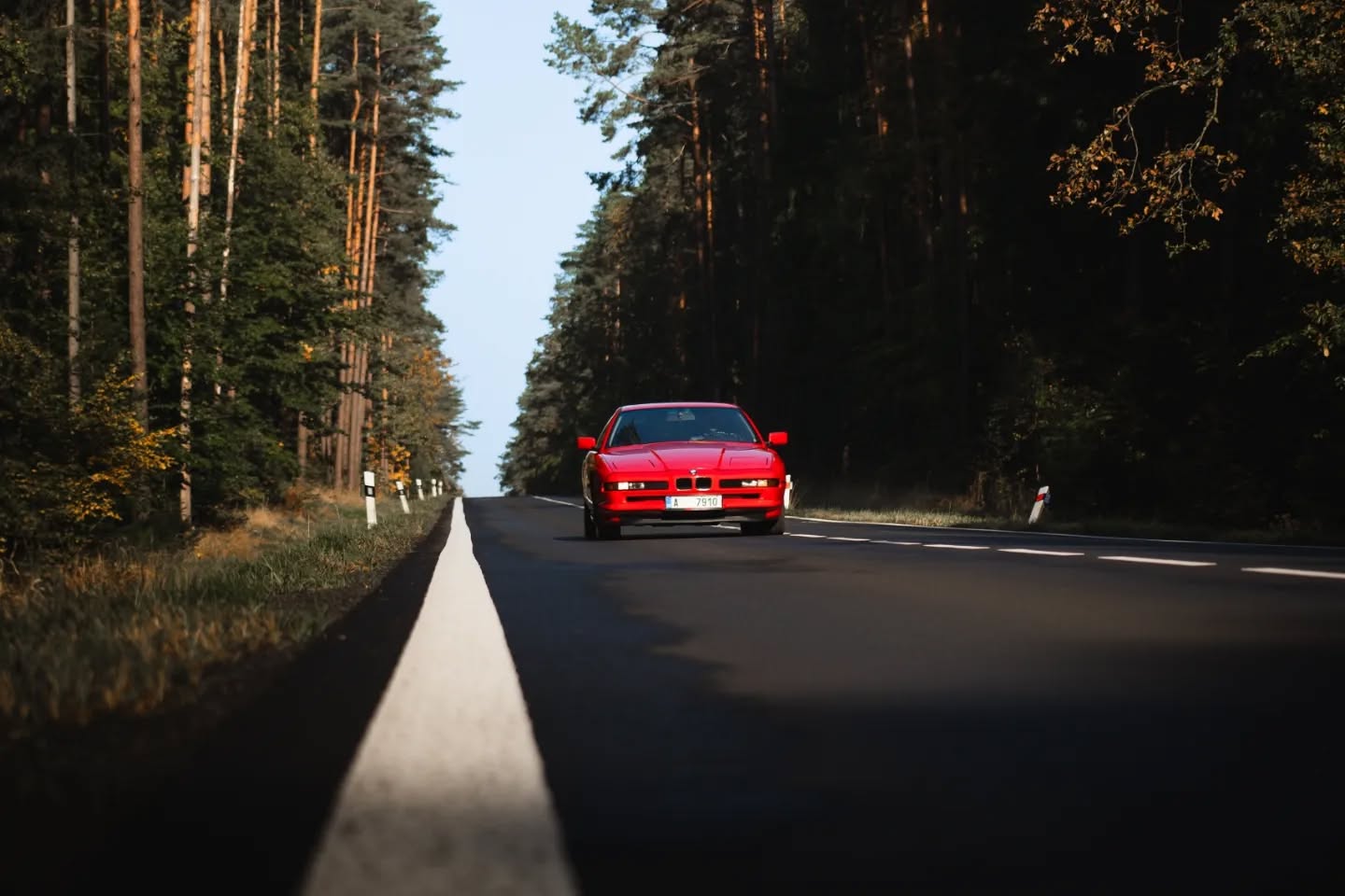 Sytá červená barva, někdy přezdíváno "německým Ferrari" - vyklápěcí přední světlomety, výsuvné střešní okno, dobová trojpaprsková kola, bezrámová okna a absence B skloupku v balíčku s dvanáctiválcovým motorem a automatickou převodovkou.